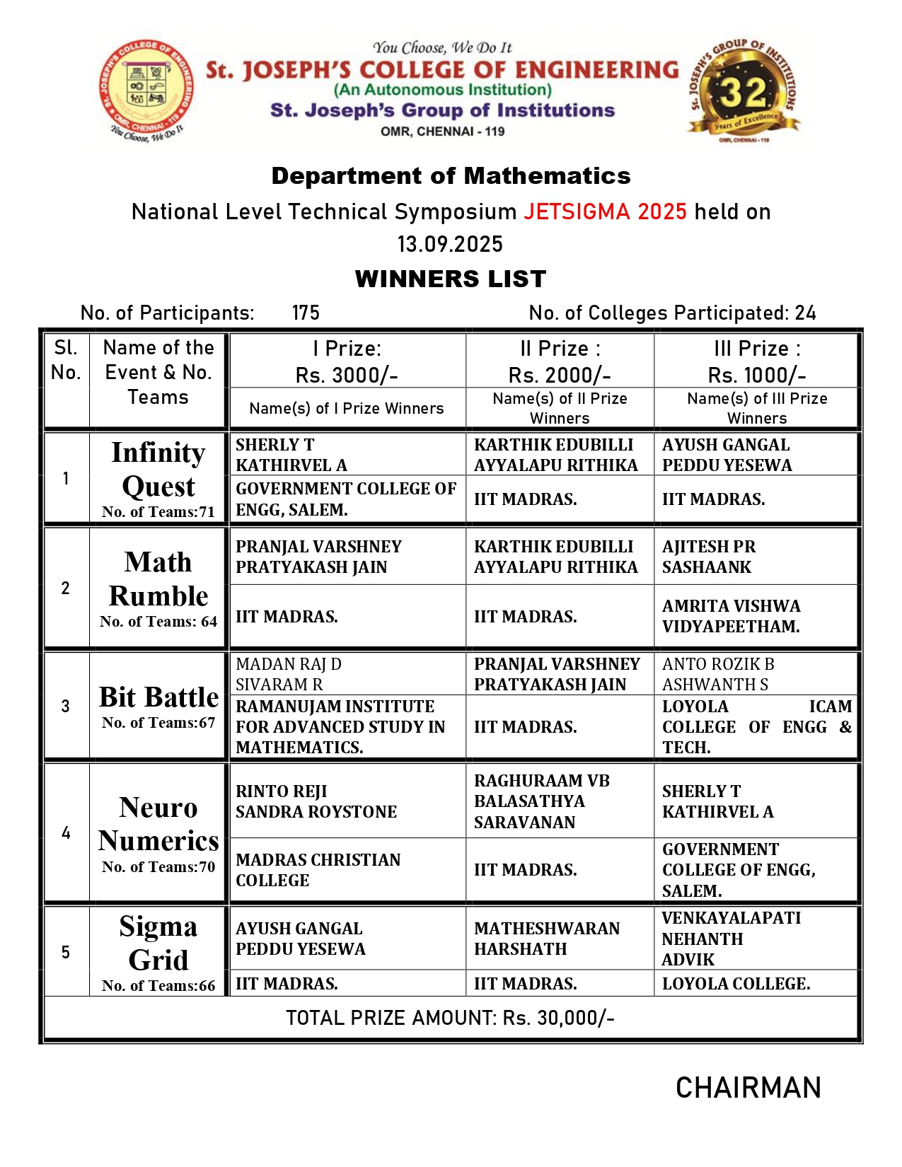 The Department of Mathematics, led by a Professor of Mathematics, comprises 21 faculty members, including 17 doctorate holders, five pursuing Ph.D.s, and one awaiting thesis review. With expertise in stochastic models, differential equations, graph theory, and fuzzy graphs, the department plays a vital role in supporting engineering programs. Having evolved alongside the institution, it has attained the status of a recognized Research Center. Through the �Mathematics Club,� the department encourages student engagement and excellence by organizing quizzes, debugging contests, crosswords, symposia, seminars, paper presentations, and other math-related activities that foster analytical thinking and innovation. VISION
