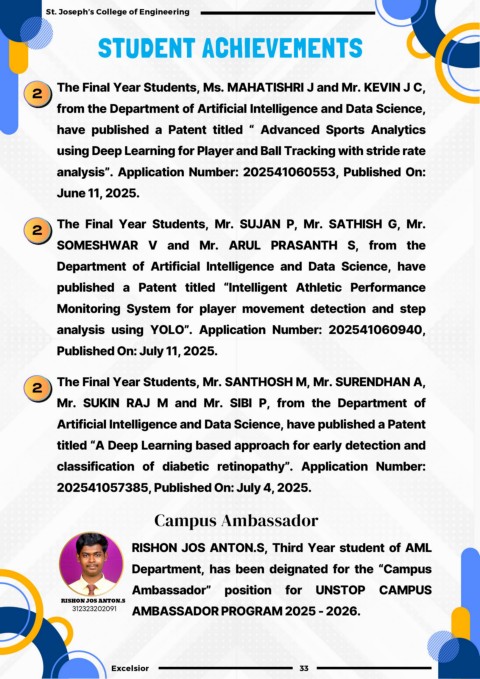 RISHON JOS ANTON.S, Third Year student of AML