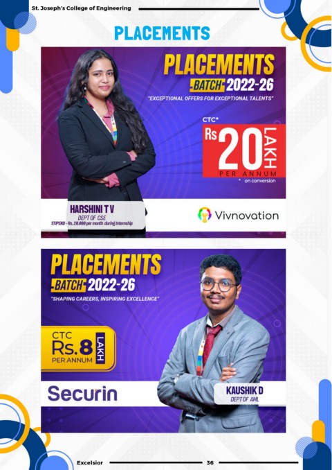 St. Joseph’s College of Engineering PLACEMENTS Excelsior 36