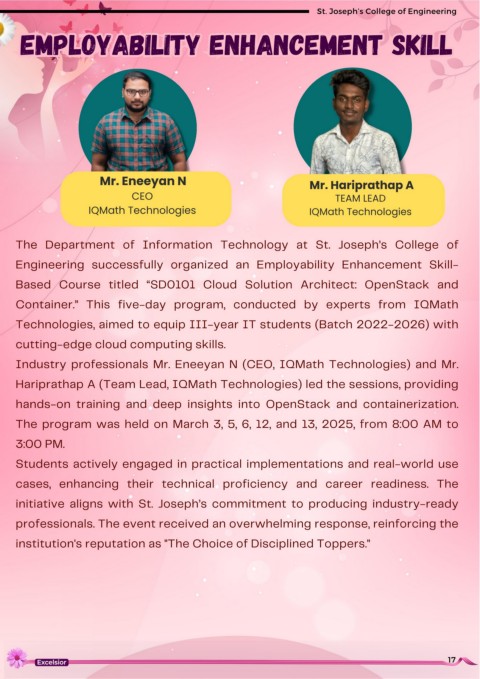 Technologies, aimed to equip III-year IT students (Batch 2022-2026) with