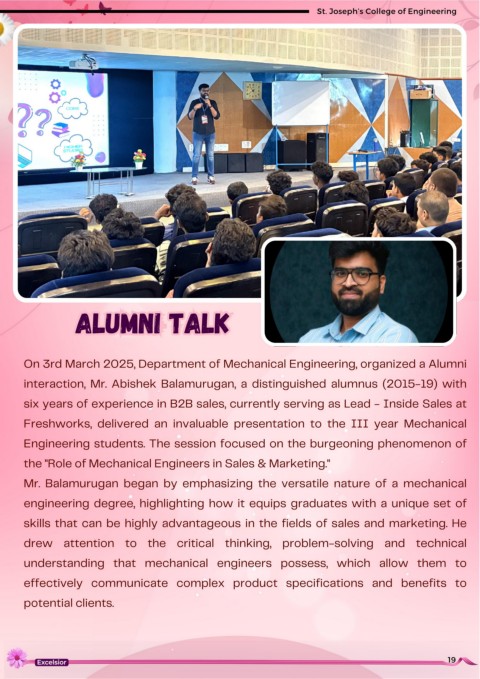 interaction, Mr. Abishek Balamurugan, a distinguished alumnus (2015-19) with