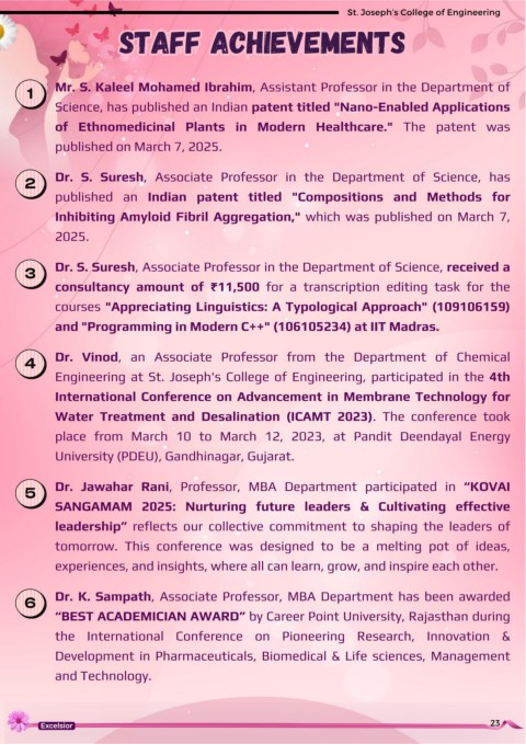 3 Dr. S. Suresh, Associate Professor in the Department of Science, received a