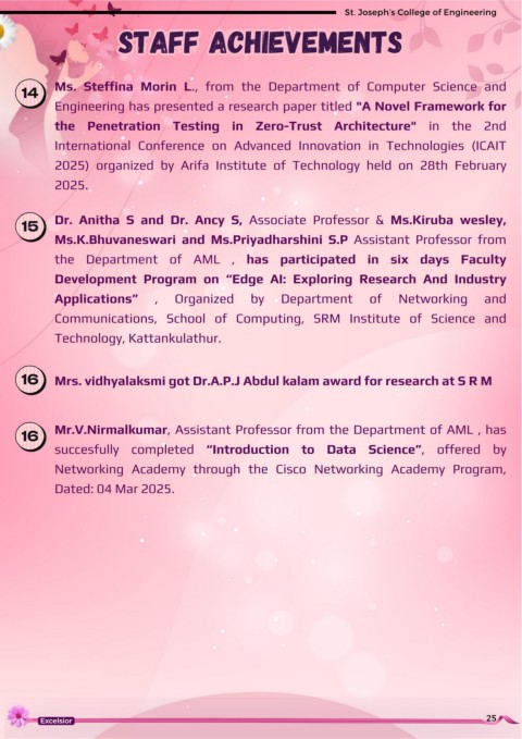 14 Ms. Steffina Morin L., from the Department of Computer Science and