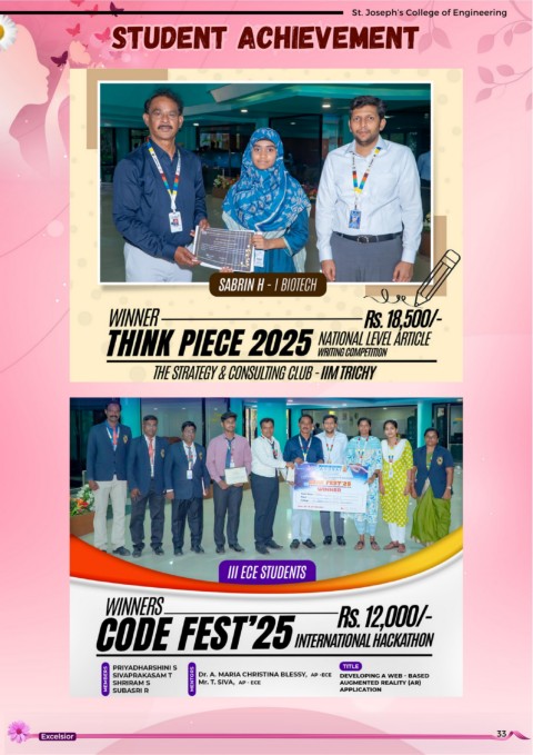St. Joseph’s College of Engineering v e h i e n t m e c u d t Student Achievement S A t e n 33
