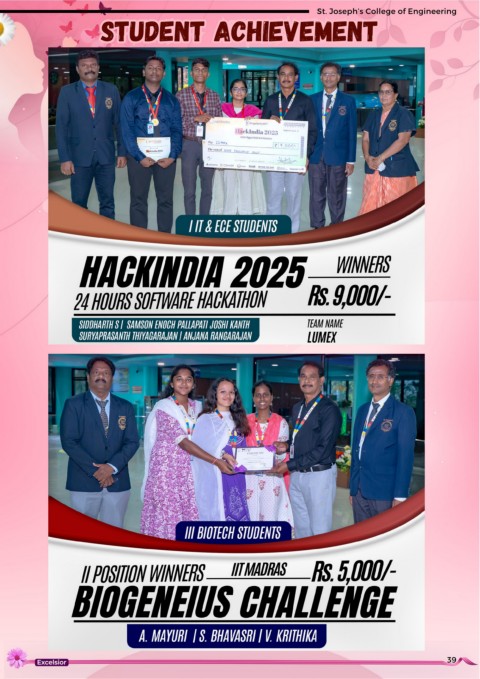 St. Joseph’s College of Engineering v e h i e n t m e c u d t Student Achievement S A t e n 39