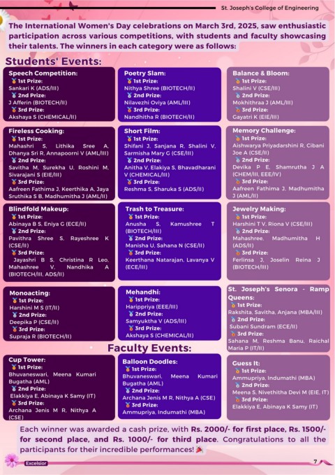 Elakkiya E, Abinaya K Samy (IT) Archana Jenis M R, Nithya A (CSE) 3rd Prize: