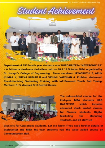 Department of EIE Fourth year students won THIRD PRIZE in “NEXTRONIX ’24”