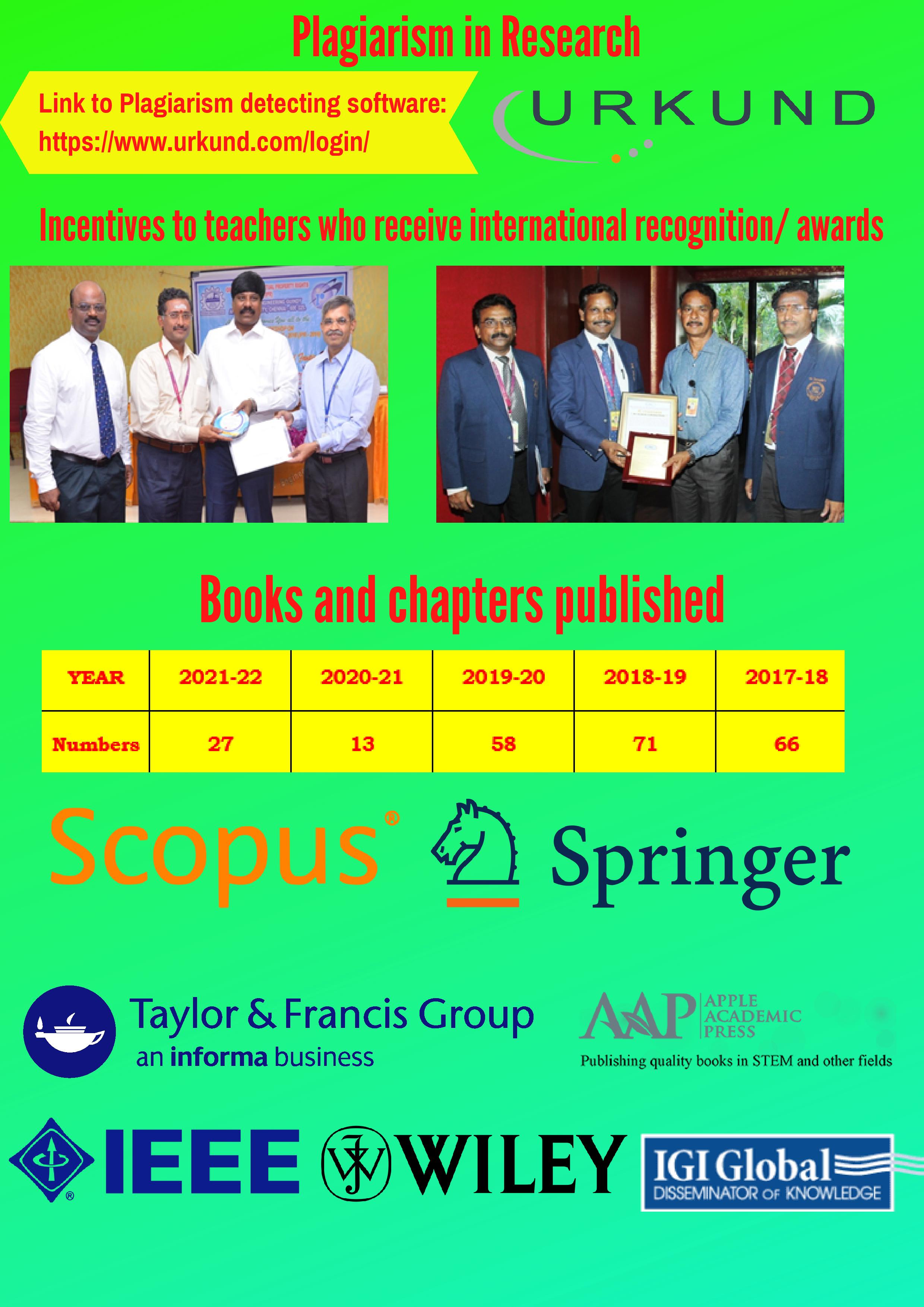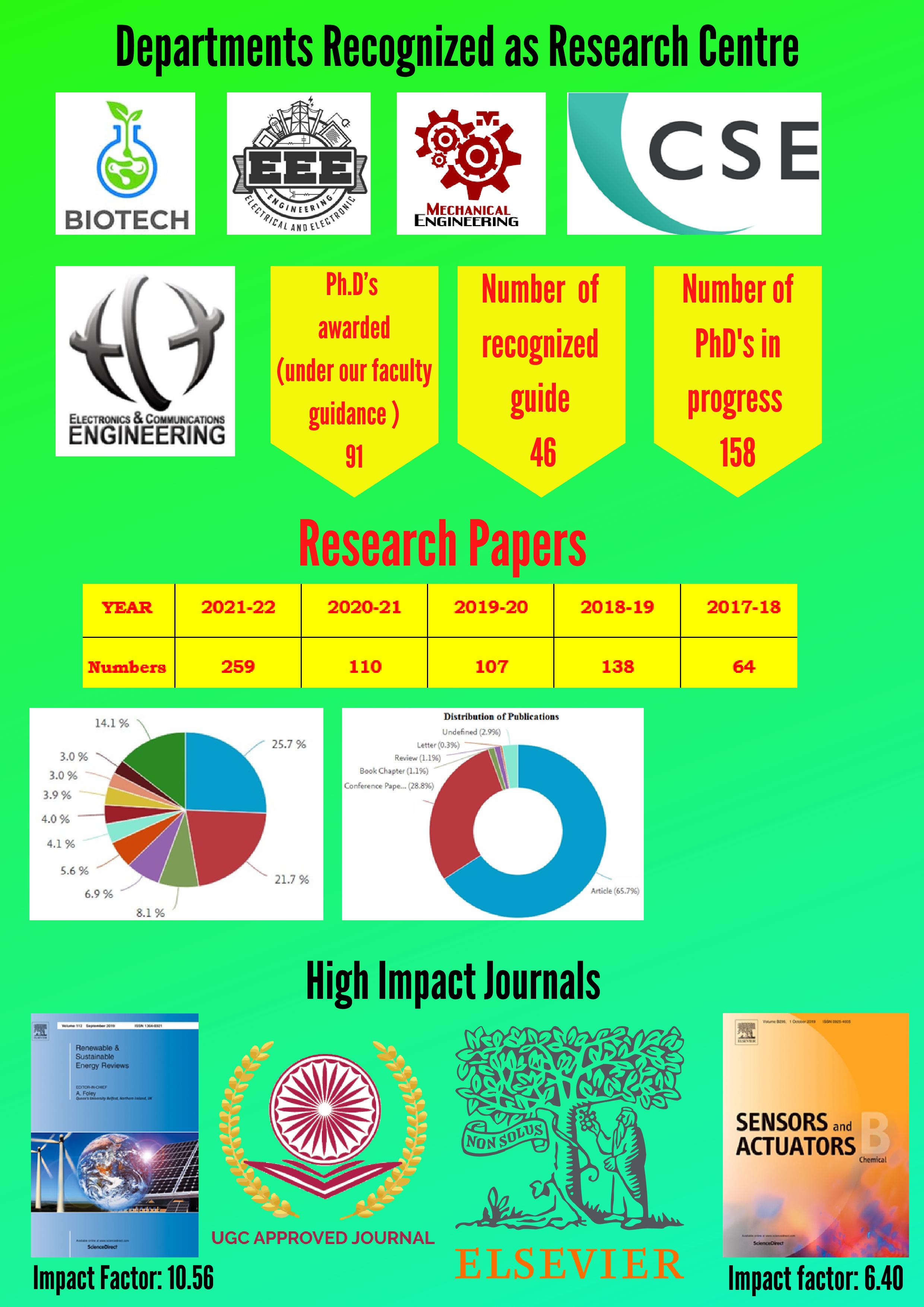 St. Joseph′s College of Engineering, ever since its inception in the year 1994, has taken huge strides towards differentiating itself by focusing on pursuit of Innovation and Research by its faculty and students. Many of our faculties are recognized supervisors to guide the Ph.D research scholars. To prove the R&D activities in our college, our faculty members have published many research papers in various National and International Journals and Conferences. Last four years they have published 784 research papers. The Research Advisory Board was constituted in the year 2012 to strengthen the Research activities of the Institution, consists of the Chairman, Secretary and Members, from various departments of our college and Scientists from other Govt. Research Centers. The Research Advisory Board monitors the research and development activities, focuses on Submission of project proposals to various funding agencies and recommends for the campus and other infrastructure developments. It also offers a quality research training experience for its students and faculty members in the recent frontiers of Engineering and Technology. Our college has been accredited by Department of Scientific and Industrial Research (DSIR), Ministry of Science and Technology as a Scientific and Industrial Research Organization (SIRO).