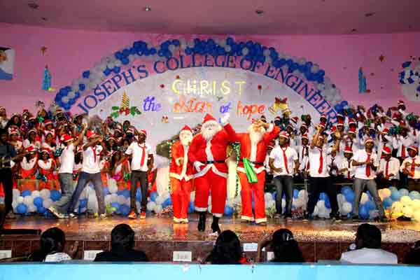 Christmas is the season of joy, holiday greetings exchanged, gift-giving, and families getting united. The Christmas celebrations took place in the college campus on 17th December 2018. On Christmas day, a special mass was conducted in the college chapel. The celebrations included a rythmic performance from the college choir and an add-on surprise package by Santa Claus. The staff and students were completely spellbound with the Christmas gratification and the day was called off with a hearty lunch.