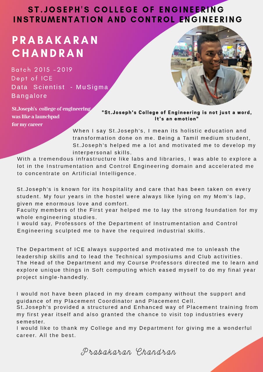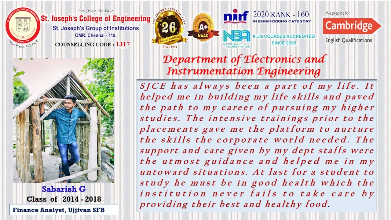 Electronics And Instrumentation Engineering - Alumni
