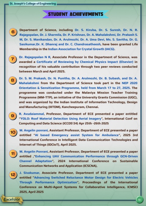 7 Dr. Rajagopalan N R, Associate Professor in the Department of Science, was