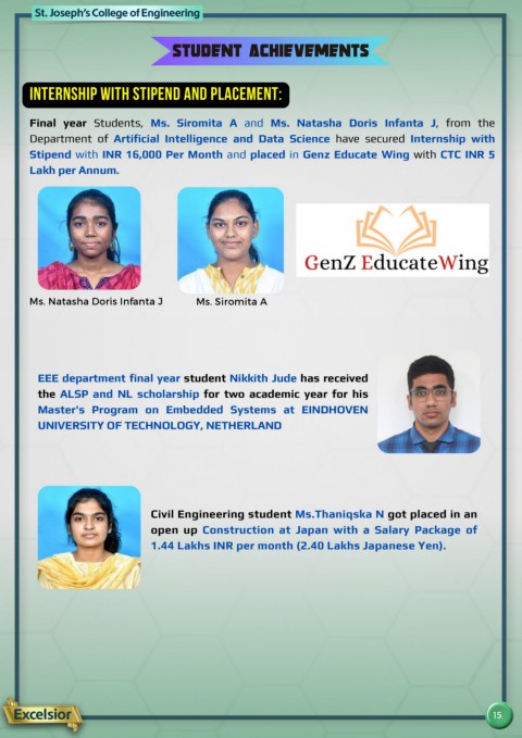 Stipend with INR 16,000 Per Month and placed in Genz Educate Wing with CTC INR 5