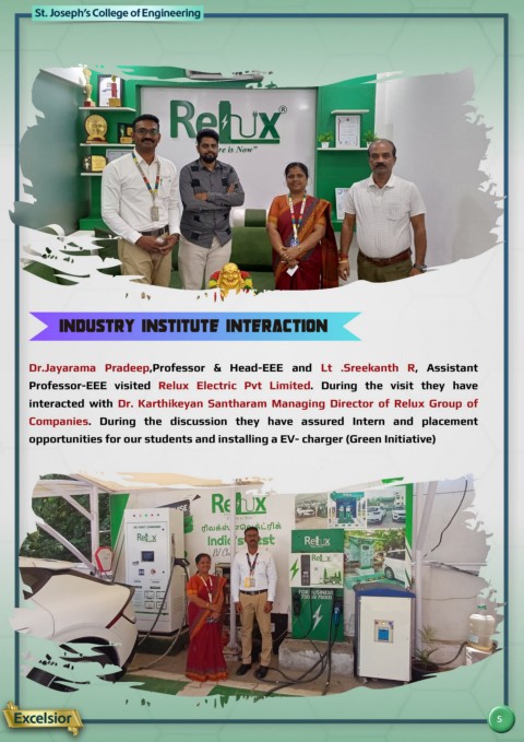 Professor-EEE visited Relux Electric Pvt Limited. During the visit they have