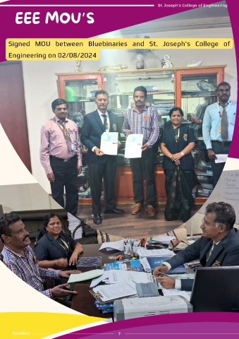St. Joseph’s College of Engineering EEE MOU’S Signed MOU between Bluebinaries and St. Joseph's College of Engineering on 02/08/2024 Excelsior 7