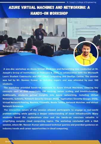 A one-day workshop on Azure Virtual Machines and Networking was conducted at St.