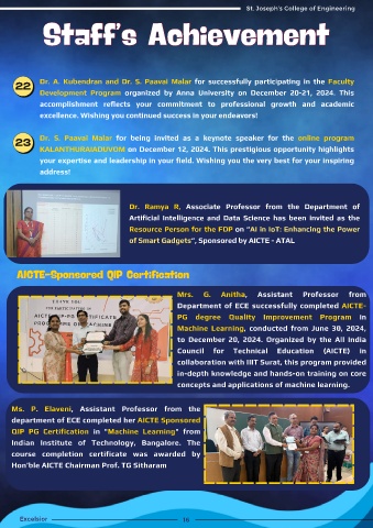 22 Dr. A. Kubendran and Dr. S. Paavai Malar for successfully participating in the Faculty