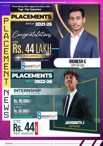 St. Joseph’s College of Engineering P L A C E M E N T N E W S Excelsior 6