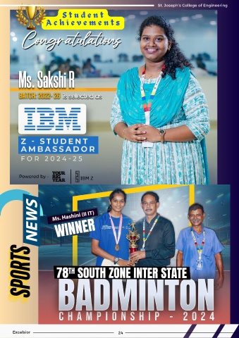 St. Joseph’s College of Engineering S t u d e n t A c h i e v e m e n t s SPORTS SPORTS SPORTS Excelsior 24