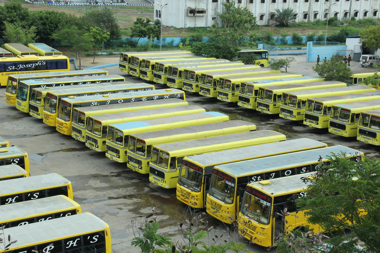 Private vehicles and two wheelers are not allowed, mainly to prevent accidents and late comers to the college.